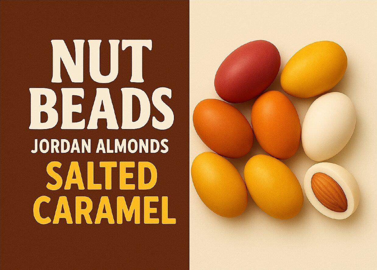 Nut Beads Jordan Almonds Salted Caramel blend tradition with irresistible flavor. Each premium almond is carefully roasted, then wrapped in a luscious salted caramel candy shell that delivers the perfect crunch. The golden hues and rich taste make them a delightful treat for any occasion—whether enjoyed as a personal indulgence, shared with loved ones, or gifted in celebrations. Sweet, salty, and satisfying, Nut Beads bring a gourmet twist to a timeless classic.